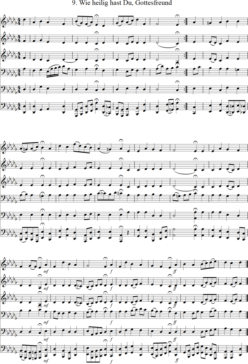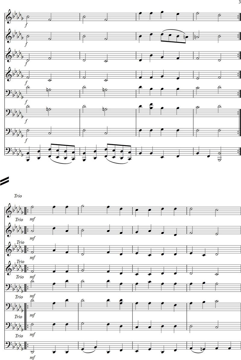 Flügel/Althörner im dreistimmigen Satz gehalten sind. Dazu tritt die Bassstimme mit Posaune